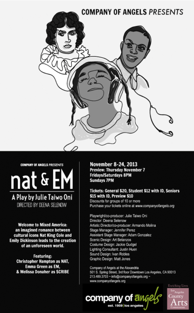 Poster for BUNK at Son of Semele Theatre. (2014)Shon Fuller as ADE and Terrence Colby Clemons as WADE in BUNK. Photos by Xuhui Zhao. (2014)Shon Fuller as ADE and Terrence Colby Clemons as WADE in BUNK. Photos by Xuhui Zhao. (2014)Shon Fuller as ADE and Terrence Colby Clemons as WADE in BUNK. Photos by Xuhui Zhao. (2014)Poster for TETHER at Doorway Arts Ensemble. (2011)Gwen Grastorf as LACH and Jade Wheeler as LAM in TETHER. (2011)Gwen Grastorf as LACH and Jade Wheeler as LAM in TETHER. (2011)Poster for nat&EM at Company of Angels. Art by Matt Jones. (2013)Emma Zakes Green as EM and Chris Hampton as NAT in nat&EM. Photo by Amanda Jane Shank (2013)Chris Hampton as NAT KING COLE in nat&EM. Photo by Amanda Jane Shank (2013)Emma Zakes Green as EMILY DICKINSON in nat&EM. Photo by Amanda Jane Shank (2013)